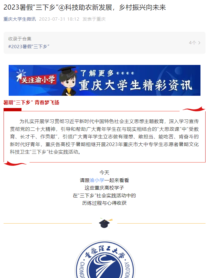 重庆大学生微讯丨2023暑假“三下乡”④科技助农新发展,乡村振兴向未来