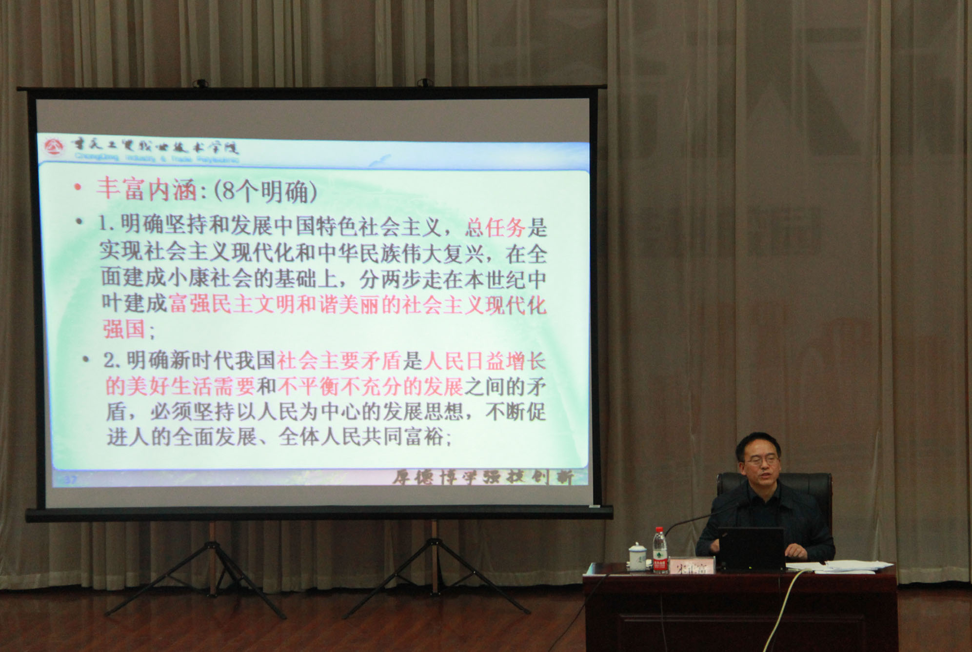 宣讲报告会上,宋院长介绍了党的十九大的大会概况,详细解读了党的十九大大会主题和大会的成果。