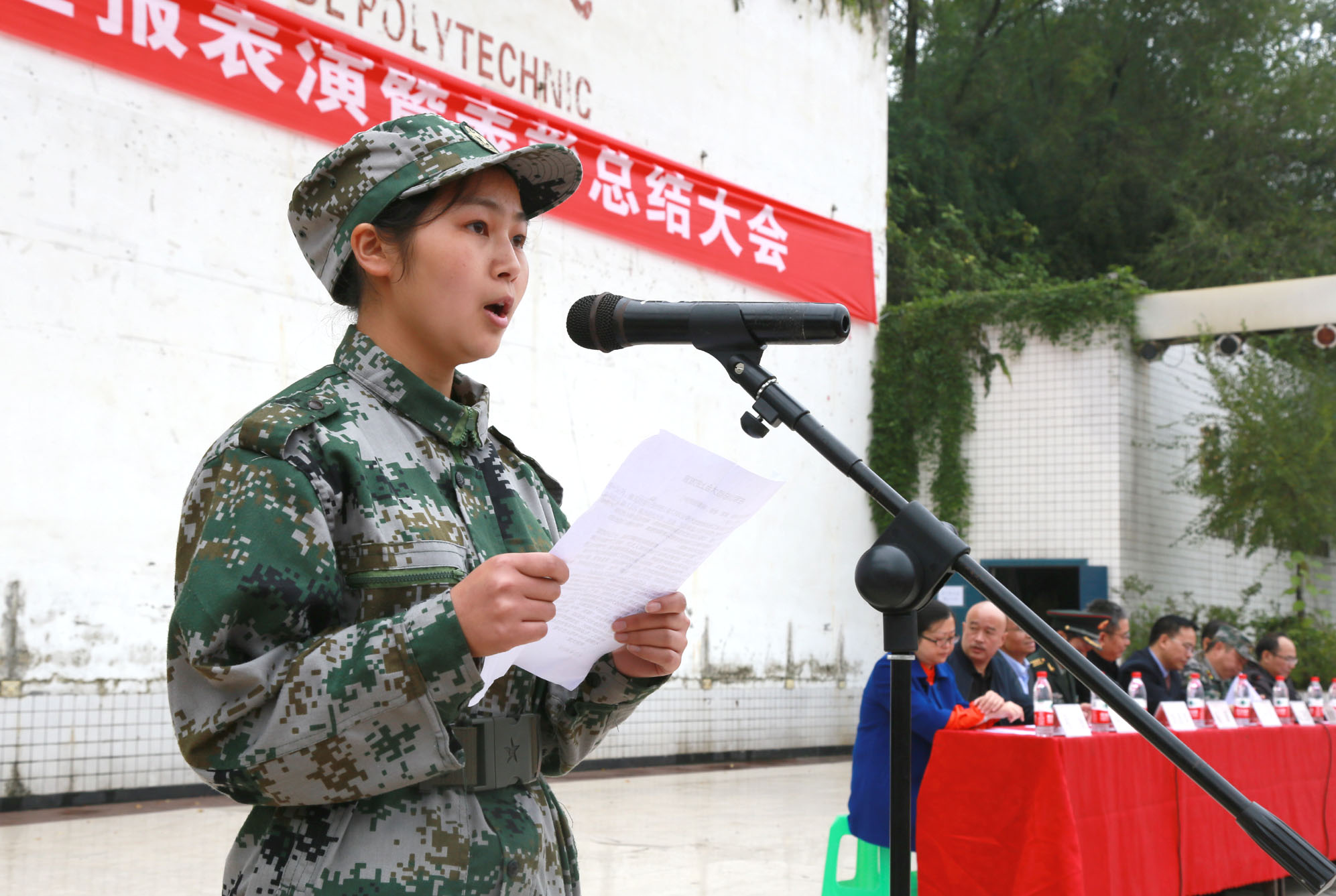 会上,军训团团长吴剑雄对2017级新生在军训中所表现出来的精神风貌给予了高度肯定;他希望,全体同学要切实承担起身上肩负历史使命,积极做国防教育的传承者和实践者。参训学生代表王星同学在发言中表示,将继续发扬军人风纪,以坚忍不拔的精神、百折不挠的意志、精益求精的标准、力争上游的干劲,秉承校训,认真学好专业技能,积极参加社会实践,努力提高综合素质,在实现中国梦的生动实践中放飞青春梦想,在为人民利益的不懈奋斗中书写人生华章!