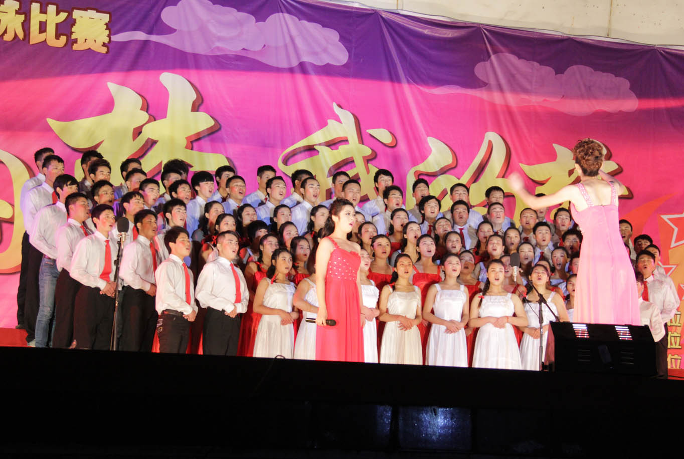 比赛中,各系代表队依次登场参演两首歌曲,其中必选曲目为《重庆工贸职业技术学院之歌》,自选曲目有《保卫黄河》、《山丹丹花开红艳艳》、《走向复兴》《四渡赤水出奇兵》、《我的祖国》、《迎风飘扬的旗》等歌曲,同学们用雄壮的气慨、嘹亮的歌声抒发对祖国和学院的炽热之爱。