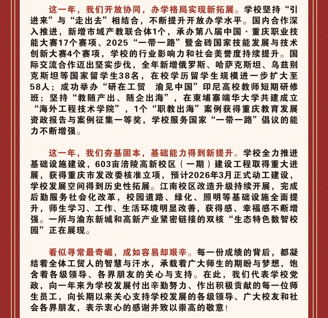 缘聚重工贸 相约共荣光——重庆工贸职业技术学院2026年新年贺词